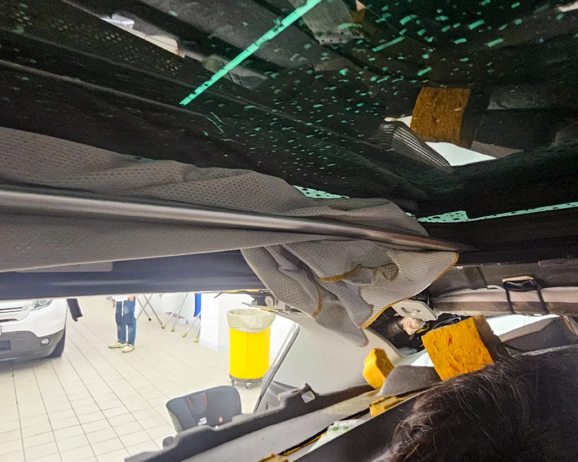 이번 수리 작업은 썬루프 레일을 분리한 후 손상된 케이블을 교체하는 방식으로 진행되었습니다. 먼저, 차량의 썬루프를 안전하게 분리한 후, 내부 구조를 점검했습니다. 고장 원인을 정확히 파악한 후, 손상된 케이블을 새 부품으로 교체했습니다. 이 과정에서 주의해야 할 점은 케이블이 제대로 연결되어야 썬쉐이드가 원활하게 작동한다는 것입니다. 수리 후에는 모든 기능이 정상적으로 작동하는지 확인하는 과정을 거쳤습니다.
