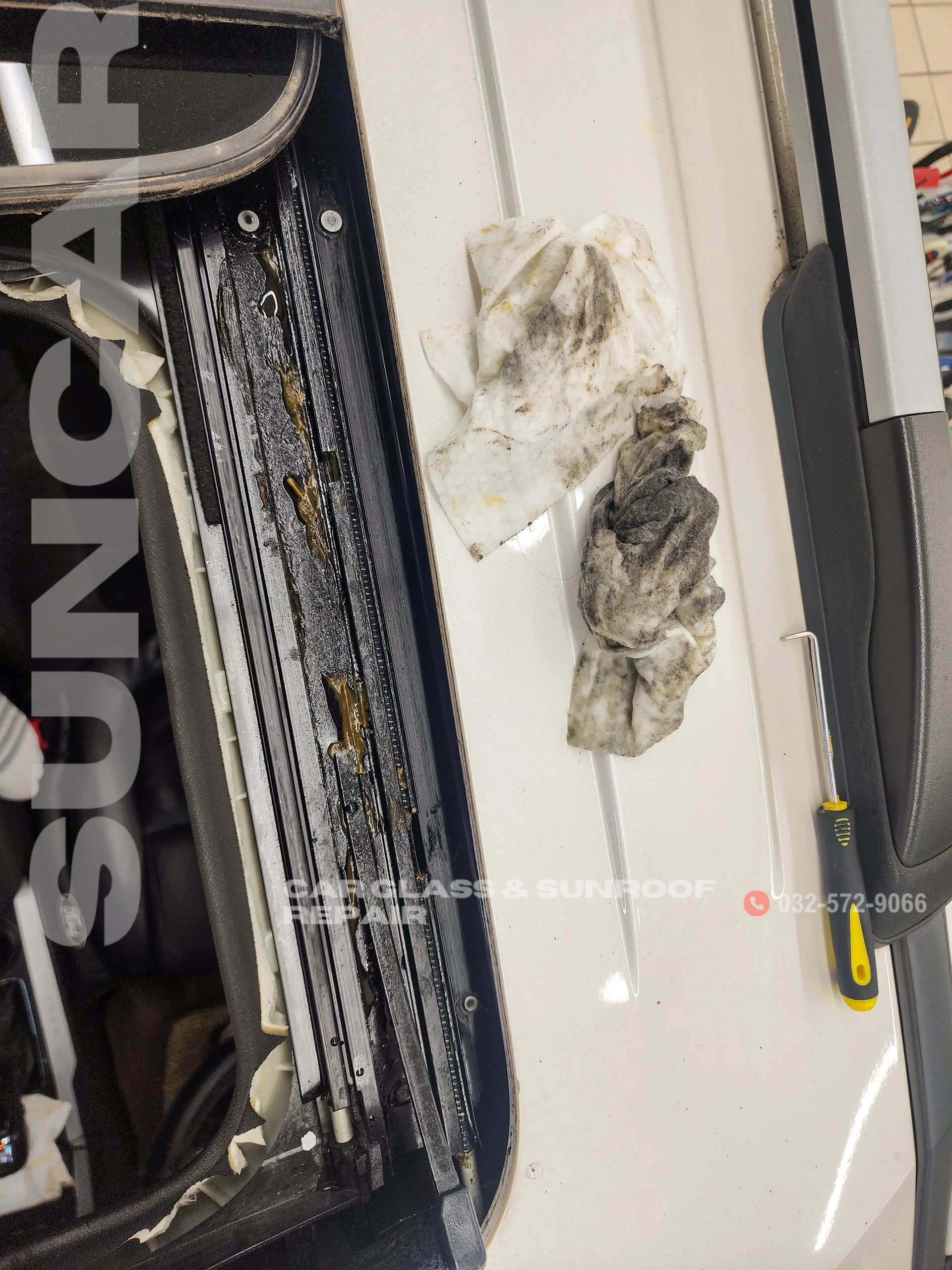 자동차 썬루프에는 빗물이 자동차 아래로 내려갈 수 있도록 하는 배수로가 있습니다. 하지만 시간이 지나면서 이 배수로에 먼지와 이물질이 쌓여 막히는 경우가 많습니다. 이번 사례에서는 배수로가 막힌 상태에서 비가 내려 물이 배수로로 내려가지 못하고 실내로 넘치게 되어 저희 썬카글라스 인천에 방문하셨습니다. 물이 넘쳐서 고장난 부품들을 합리적인 비용으로 교체 진행했습니다. 제조사의 공식 서비스 센터에서는 부품을 통째로 교체하기 때문에 비용이 비싸고 시간이 오래 걸리지만, 저희는 빠르고 합리적으로 수리할 수 있었습니다.